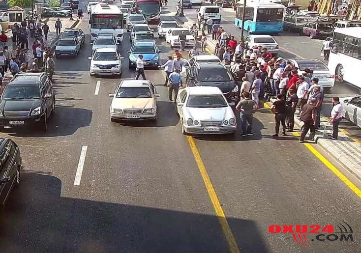 \"\" Bakının Nizami rayonunun Qara Qarayev prospektində - 8-ci km bazarının qarşısında (metonun “Xalqlar dostluğu” stansiyası istiqamətində) sıxlıq müşahidə edilir.