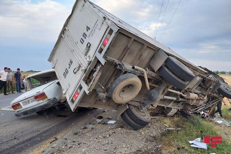 OXU24.COM İTV-yə istinadən xəbər verir ki, axşam saatlarında baş verən qəzada yük maşını avtomobilin üzərinə aşıb.