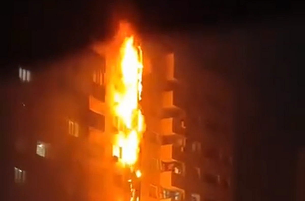 Yasamal rayonunda çoxmərtəbəli yaşayış binası yanır.