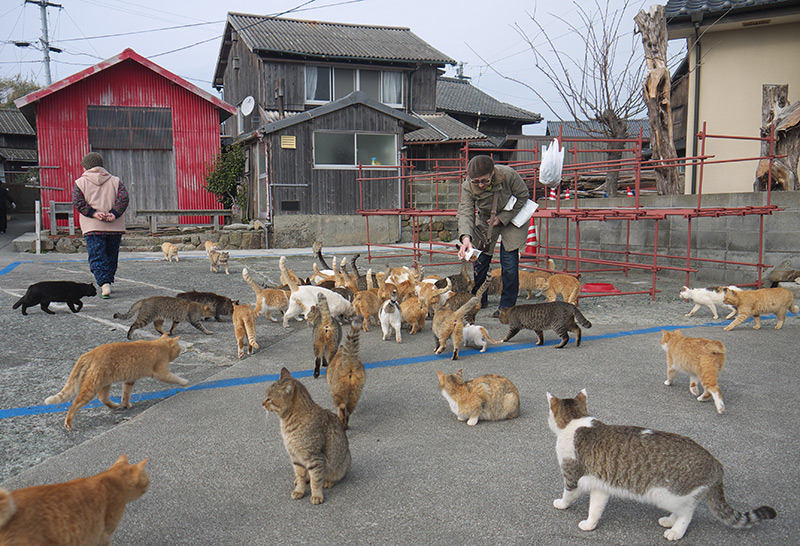 Burada pişiklərin qızıl dövrü başladı. Balıqçılıq dövründə də pişiklər adanın ən sevimliləri olaraq qaldı. Yaponlar həmişə inanıblar və indi də inanırlar ki, pişiklər bəxt və pul gətirə bilir, həmçinin havanı proqnozlaşdırır.