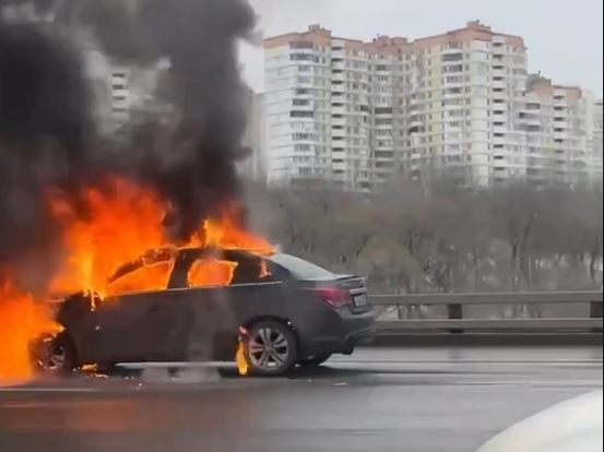 Moskvada avtomobil yolun hərəkət hissəsində yanıb.