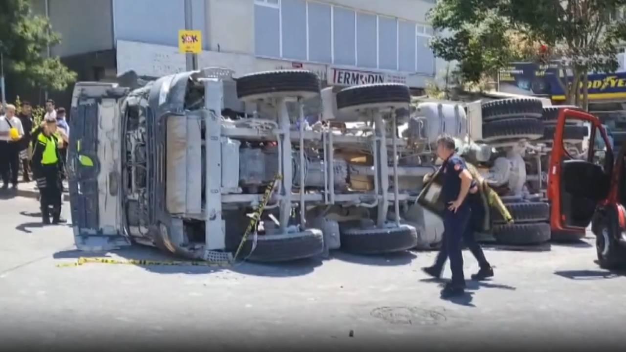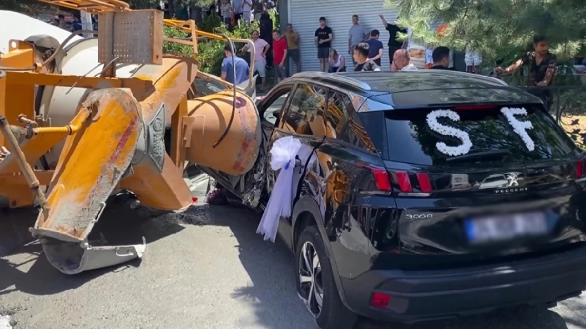 İstanbulda dönə bilməyən beton qarışdıran toy karvanının yol kənarında dayanan gəlin maşınının üzərinə düşüb.