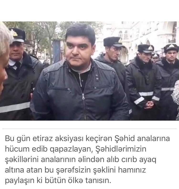 Artıq bir neçə gündür ki, sosial şəbəkələrdə guya şəhid ailələrinin təhqir olunması və təyziqlərə məruz qalmaları barədə həqiqətə uyğun olmayan məlumatlar yayılıb. Sosial şəbəkələrdə bir şəxsin fotosu paylaşılaraq “ bu gün etiraz aksiyası keçirən Şəhid analarına hücum edən və Şəhidlərimizin şəkillərini analarının əlindən alaraq cırıb ayaqlar altına atan bu şəxsin şəklini paylaşın” kimi təhqirmiz ifadələr yer alıb.