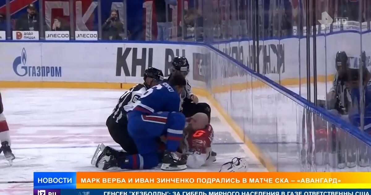 Sankt-Peterburq SKA-nın hücumçuları İvan Zinçenko və Omsk Avanqard Mark Verba xokkey oyunu zamanı əlbəyaxa davaya başlayıblar.