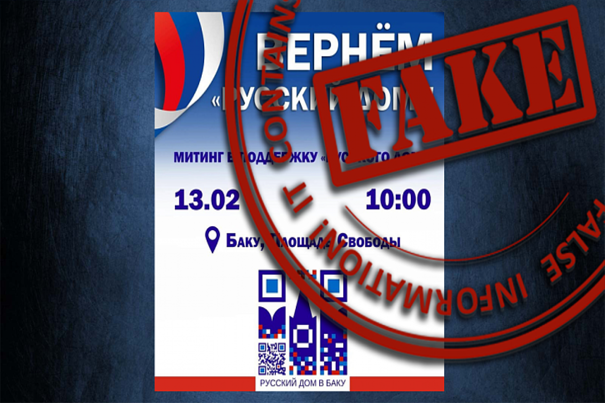 Qeyd edək ki, Bakıdakı “Rus Evi”nin adından başqa saxta məlumatlar da yayılıb. Xaricdə Azərbaycan əleyhinə fəaliyyət göstərən bəzi “youtube” kanalları da həmin məlumatlara istinadən materiallar yayıb.