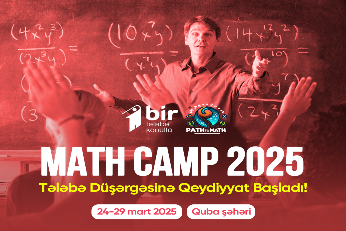 "Bir Könüllü" Tələbə Təşkilatının və "Pathtomath" Tələbə Riyaziyyatçılar Klubunun birgə təşəbbüsü ilə 24-29 mart 2025-ci il tarixlərində Quba rayonunda tələbələrin yaz düşərgəsi - “MathCamp 2025” təşkil ediləcək.