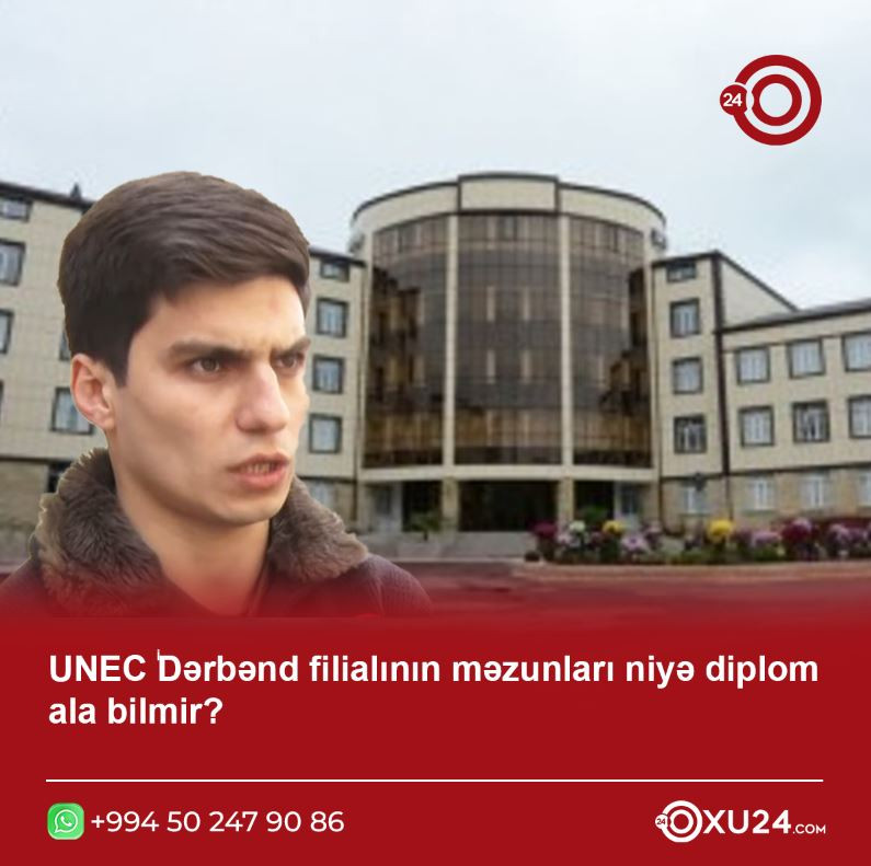 Oxu24com məsələ ilə bağlı araşdırma aparan zaman ziddiyətli məqamla da üzləşib.Azərbaycan Respublikası Elm və Təhsil Nazirliyinin diplomunu ala bilməyən tələbələrə verdiyi rəsmi cavabda qəbulların yalnız Dövlət İmtahan Mərkəzinin (DİM) imtahanları əsasında həyata keçirildiyi qeyd olunur. Ancaq UNEC-in Dərbənd filialının rəsmi saytında bunun tam əksi qeyd olunub.Saytda qeyd olunur ki, sözügedən filiala tələbə qəbulu Rusiya Federasiyasının tələbələrin qəbul qaydalarına əsasən aparılır.