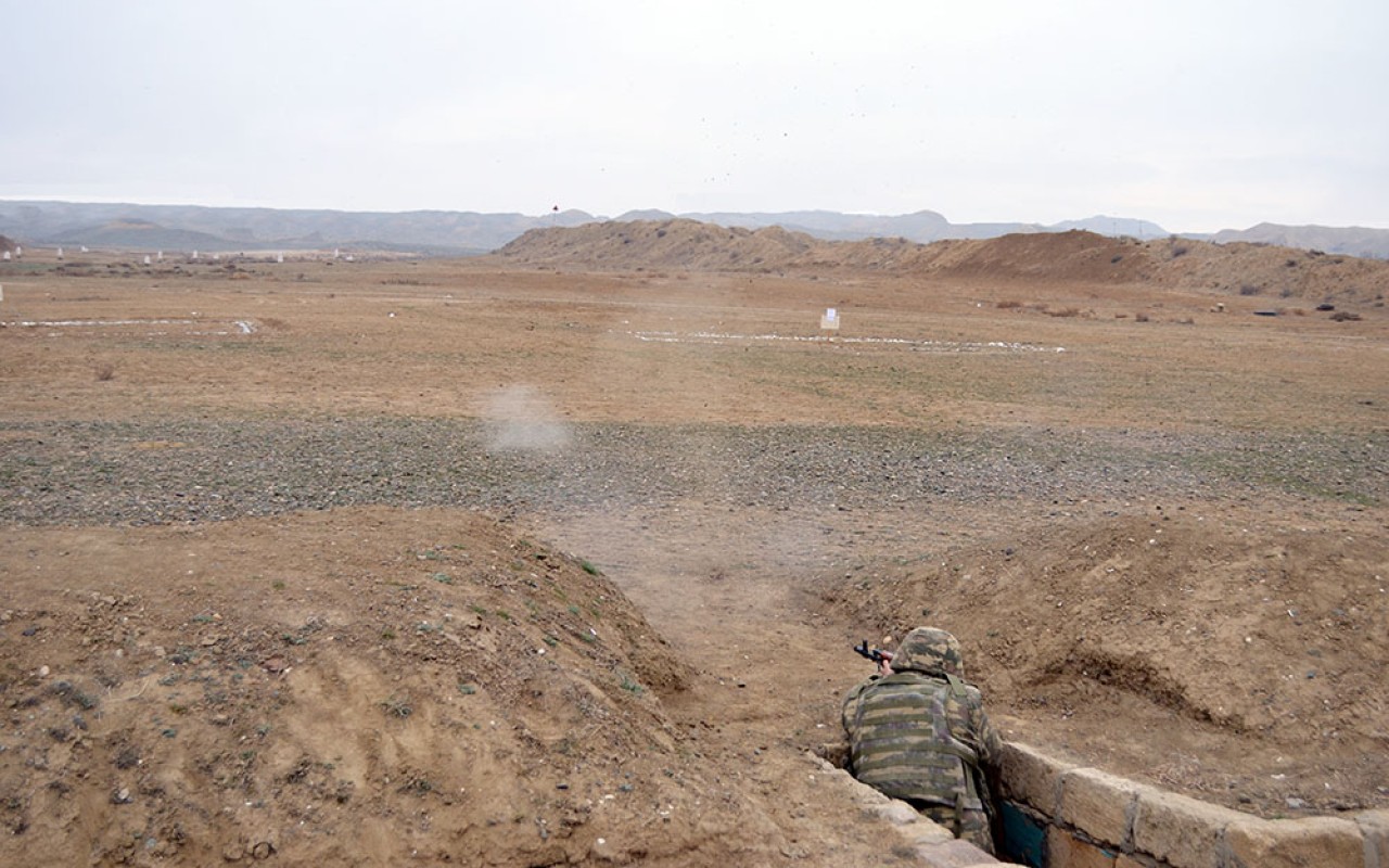 Təlimə cəlb olunan şəxsi heyət atıcı silahlardan praktiki atış çalışmalarını müvəffəqiyyətlə icra edir.