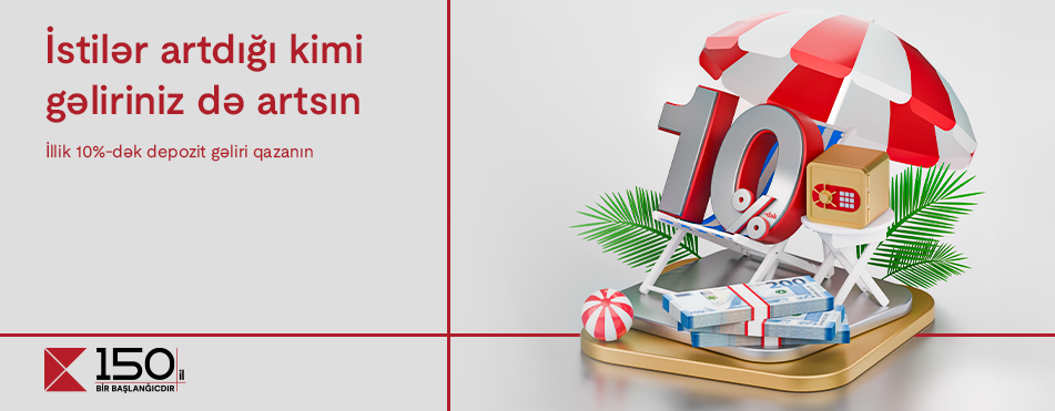 Напомним, что первый банк страны Kapital Bank объявил о депозитной кампании, которая обеспечивает 10% годового дохода на 6 месяцев. Из-за высокого спроса клиентов срок кампании был продлен до конца июня. Таким образом, любой, кто разместит депозит «Капитал» до 30 июня в течение 6 месяцев получит годовой доход в размере 10%.