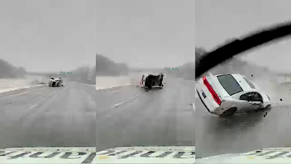An ambulance carrying a patient narrowly missed the flipping car as it rolled across the southbound lanes.