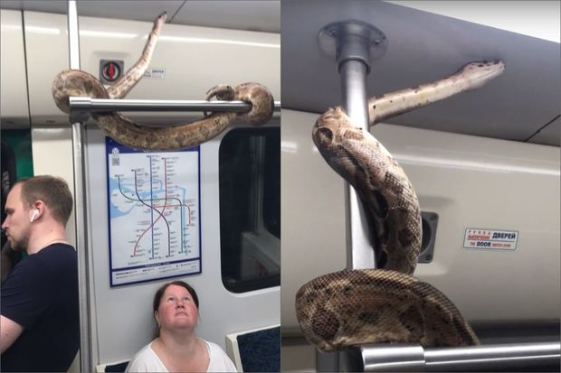 Огромную змею заметили в вагоне метро в российском городе Санкт-Петербурге.