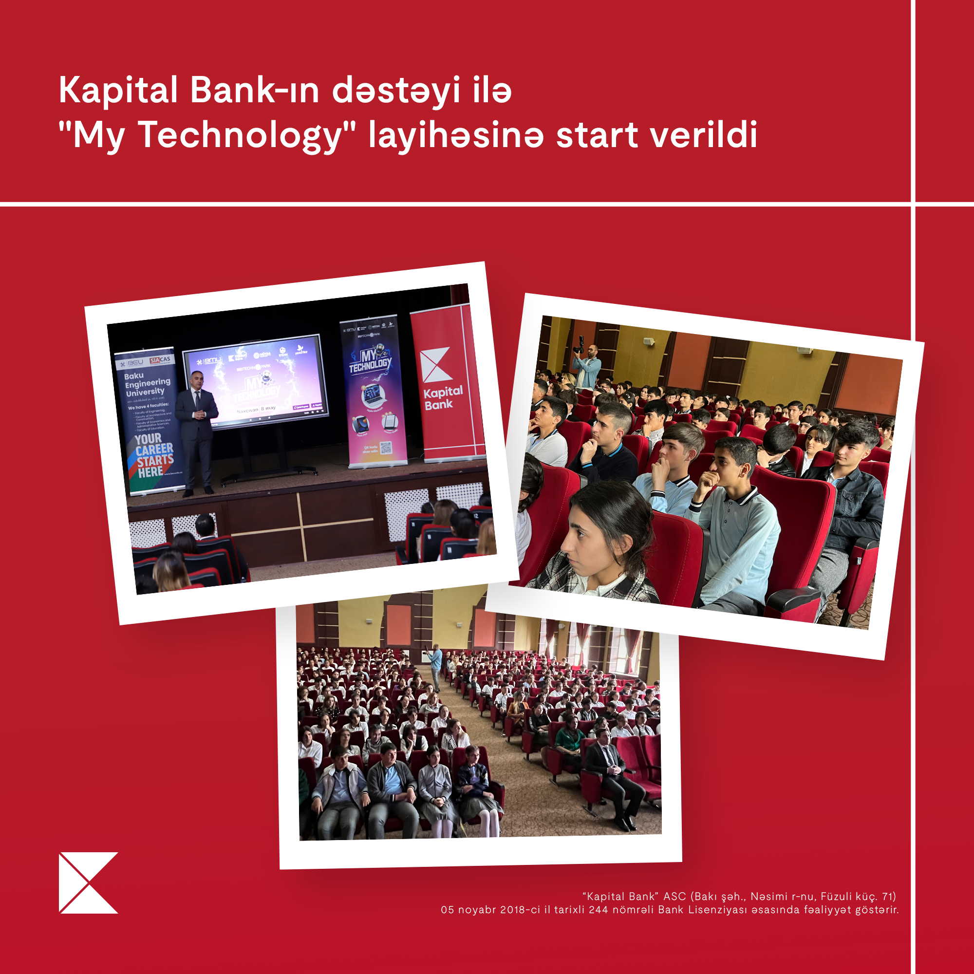 With the support of Kapital Bank, the country’s first bank, the “My Technology” competition has been launched in collaboration with the Ministry of Education of the Nakhchivan Autonomous Republic and Baku Engineering University, targeting students of the 10th and 11th grades of comprehensive schools, as well as their teachers. The aim of the competition is to identify students with entrepreneurial ideas among schools and support their further education and motivation in this field. Within the framework of the project, students and teachers should register by submitting their projects that meet the competition criteria by May 20, 2024.